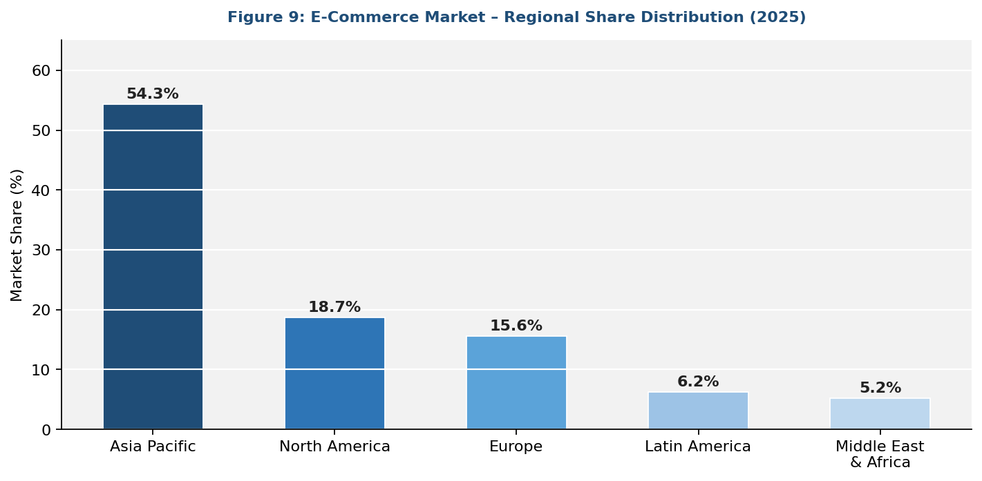 Figure 9: E-Commerce Market – Regional Share Distribution (2025)