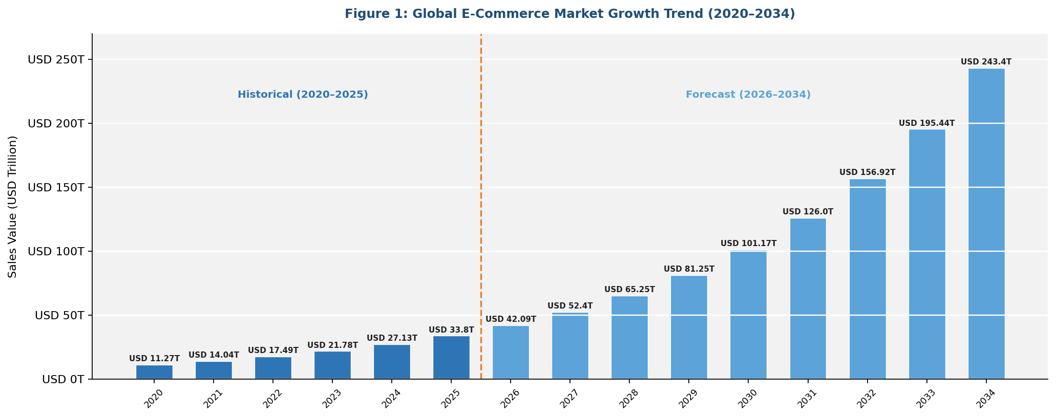 Figure 1: Global E-Commerce Market Growth Trend (2020–2034)