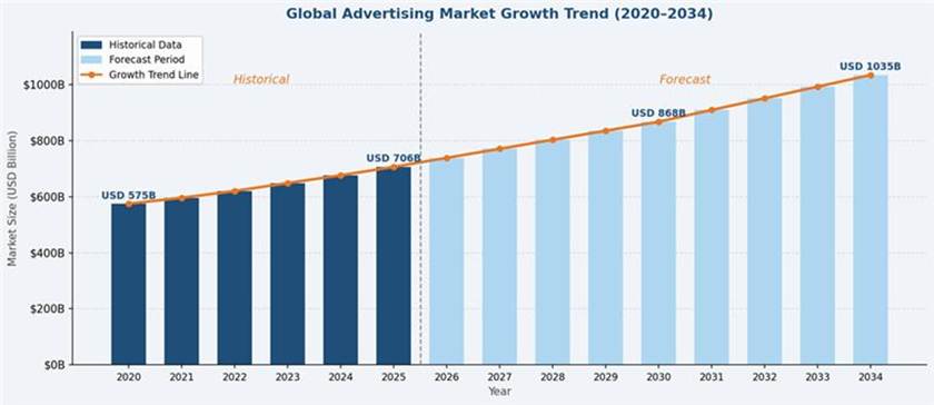 Figure 1: Global Advertising Market Growth Trend (2020–2034)