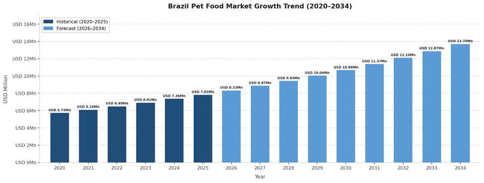 Figure 1: Brazil Pet Food Market Growth Trend (2020–2034)