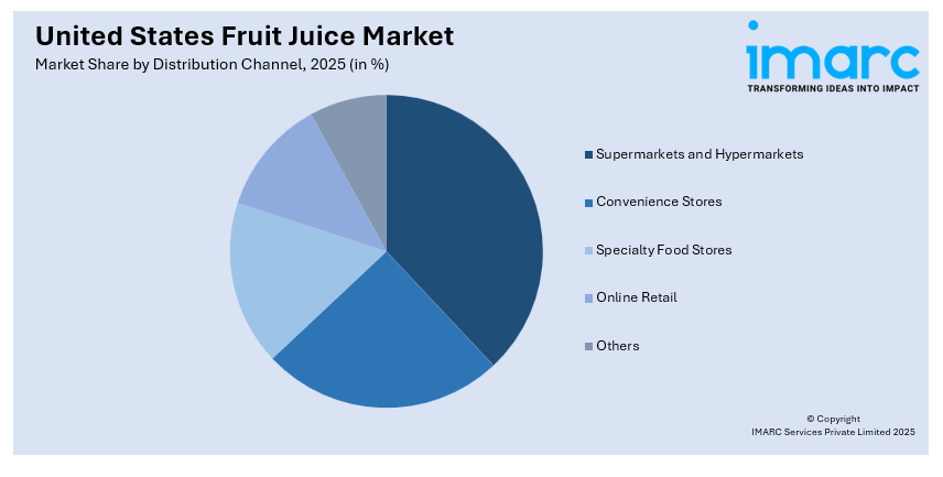 Convenience stores are popular for on-the-go purchases, making them a key channel for single-serve and RTD fruit juice products. Their strategic locations and extended operating hours attract consumers seeking quick and accessible options.
