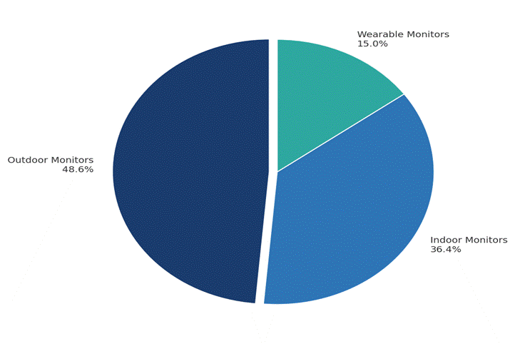 Outdoor monitors command the largest share at 48.6% (2025), driven by government-mandated ambient monitoring networks, smart-city deployments, and industrial fence-line monitoring requirements across North America, Europe, and the Asia Pacific.
