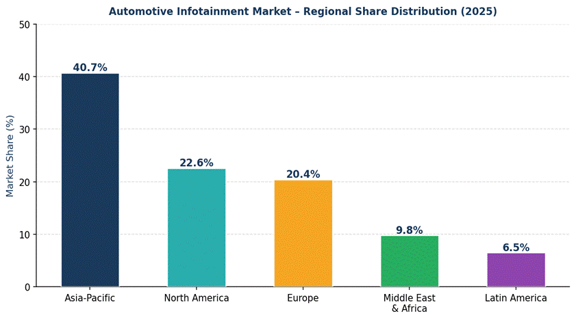 Figure 9: Automotive Infotainment Market – Regional Share Distribution (2025)