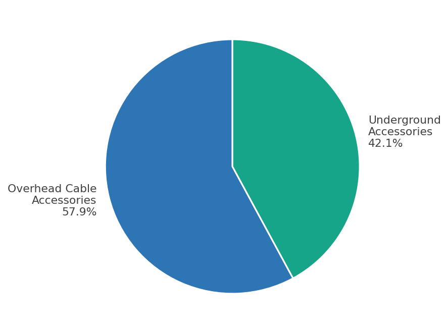 Overhead cable accessories hold 57.9%, and underground accessories account for 42.1% of the market in 2025, with underground growing faster.