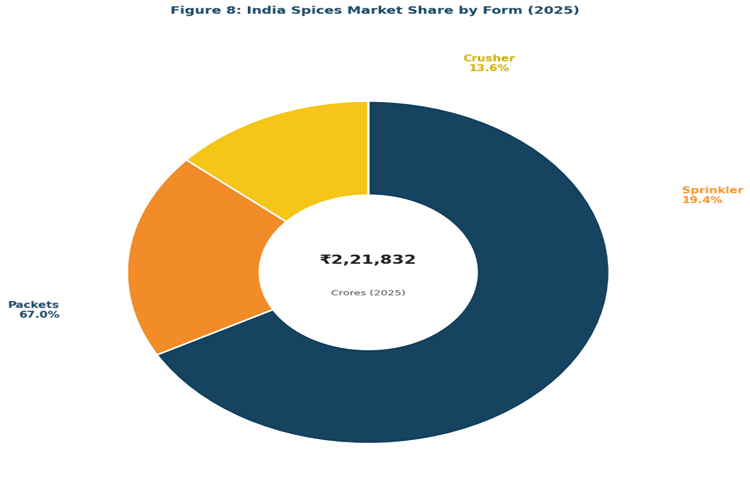 ZOFF Foods reported in October 2025 that 75% of its revenue derives from online retail, with 65% from quick-commerce platforms, validating the structural shift in how Indian consumers purchase spices. Quick-commerce platforms (10-15 minute delivery) are particularly driving impulse purchases and expanding the addressable market for premium and specialty spice products.