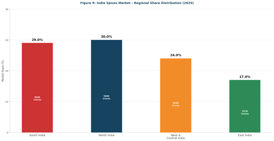 Figure 9: India Spices Market – Regional Share Distribution (2025)
