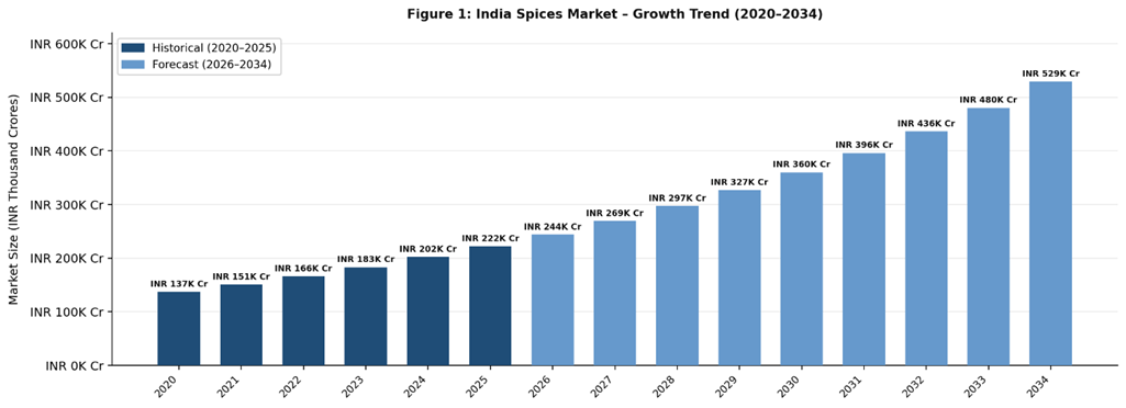 Figure 1: India Spices Market – Growth Trend (2020–2034)