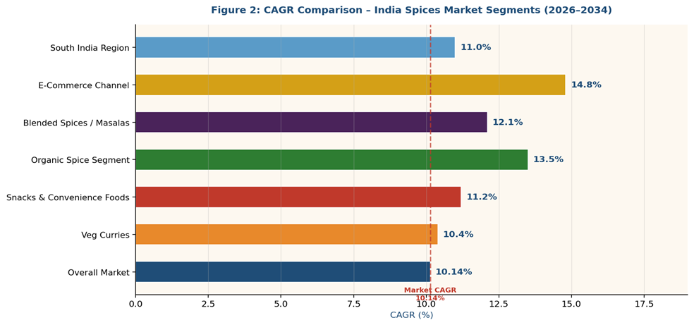 Figure 2: CAGR Comparison – India Spices Market Segments (2026–2034)