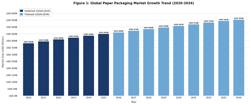 Figure 1: Global Paper Packaging Market Growth Trend (2020-2034)