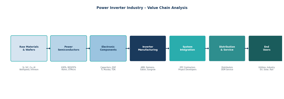 The power inverter value chain spans six integrated stages from semiconductor raw material supply through end-user deployment and lifecycle service. Each stage presents distinct competitive dynamics, technology investment requirements, and margin profiles that collectively determine industry profitability.