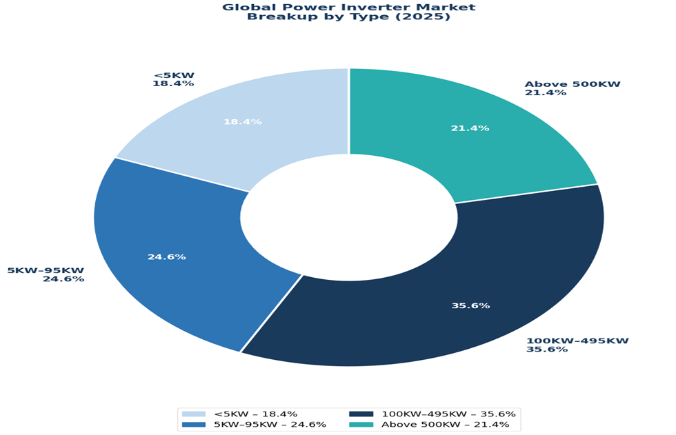100KW–495KW Segment: The segment’s 35.6% dominance in 2025reflects deep penetration in utility-scale solar farms, industrial motor drive systems, and grid-connected wind turbine installations where medium-power inverters are the standard specification.