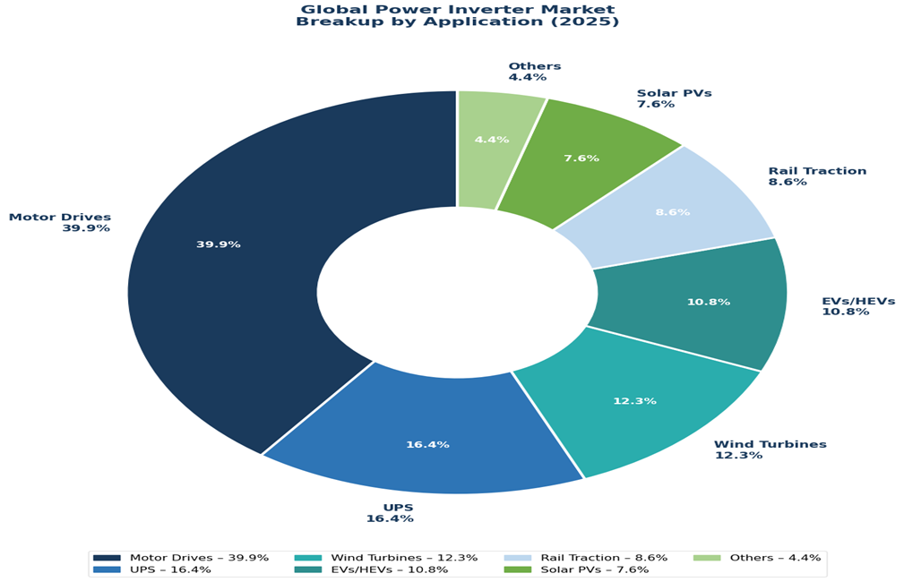 The inverter market ranges from sub-5 kW residential microinverters to multi-megawatt modular systems for utility-scale renewables and HVDC transmission. Key applications include motor drives, UPS, rail traction, wind turbines, EVs, and solar PV. Growth is driven by global net-zero targets, industrial automation, EV infrastructure, and grid modernization initiatives worldwide.