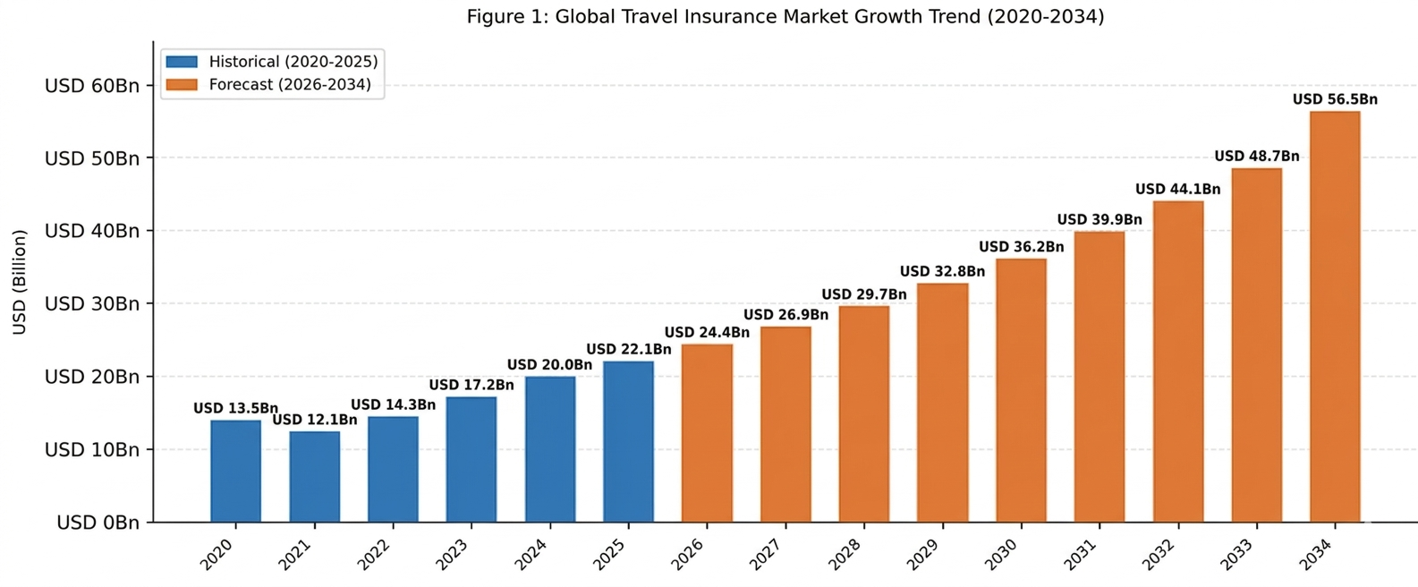 Figure 1: Global Travel Insurance Market Growth Trend (2020-2034)