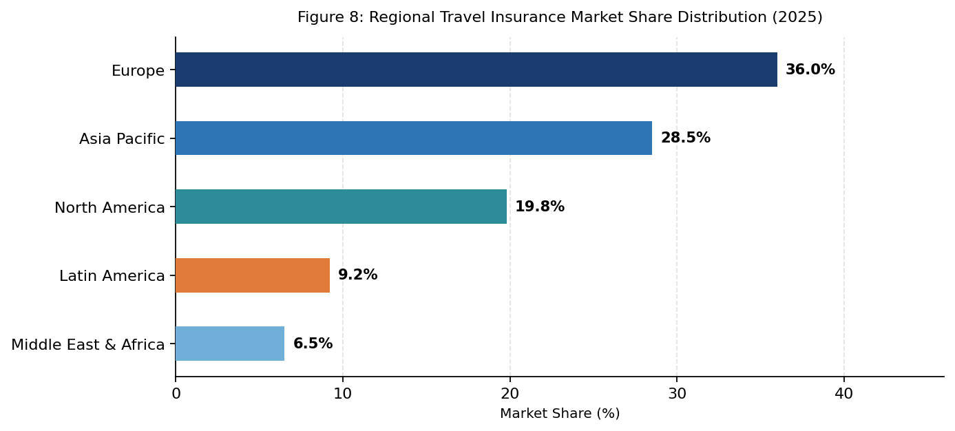 Figure 8: Regional Travel Insurance Market Share Distribution (2025)